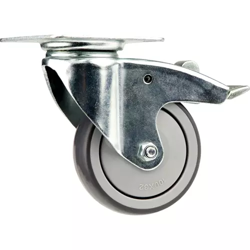 These polyurethane casters feature double ball race swivels and quiet ball bearing wheels.