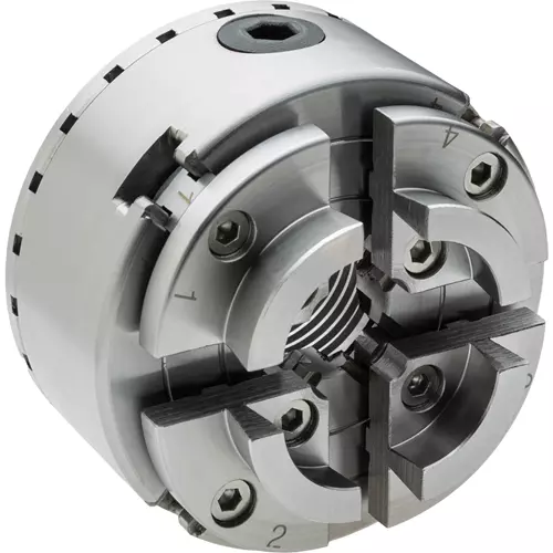 This 4-Jaw, Self-Centering Chuck with dovetailed jaws is great for small bowl and plate turning and features jaws that grip by clamping around the workpiece or expanding to fit a turned recess. The minimum diameter required for clamping around the workpiece is 1-1/4" and the minimum diameter required for expansion is 1-13/16". Includes T-handled wrenches, wood screw point and machined chuck lever. Works great with optional H6268 and H6269 jaws, which are available for additional clamping options.