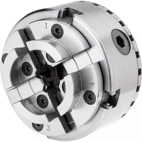 This 4-Jaw, Self-Centering Chuck with dovetailed jaws is great for small bowl and plate turning and features jaws that grip by clamping around the workpiece or expanding to fit a turned recess.