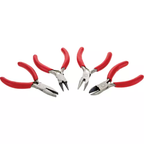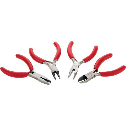 Measuring less than 3" long, these drop-forged, heat-treated Micro Pliers are great for model makers, hobbyists, and computer technicians. Set includes: fixed-tip retaining ring pliers, duck bill pliers, needle nose pliers, and diagonal cutter.