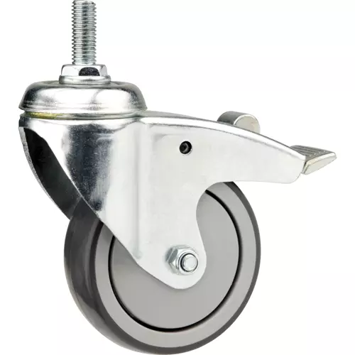 This polyurethane Post Mount Swivel Casters offers brakes and strong ball bearing construction.Weight capacity: 220 lbs. Post threads: M12 x 1.75 Height mounted: 5-1/8"