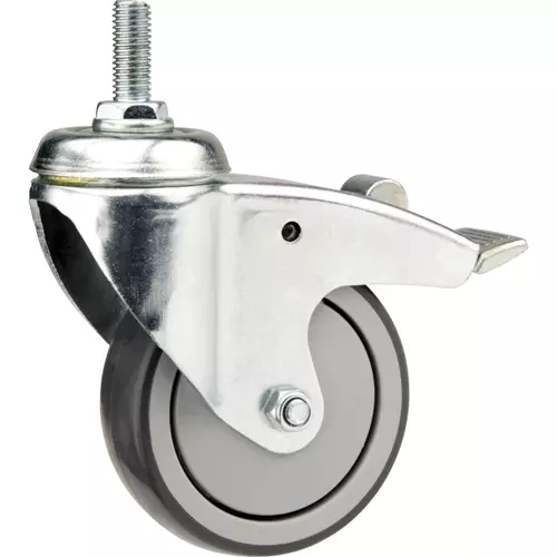 This polyurethane Post Mount Swivel Casters offers brakes and strong ball bearing construction.