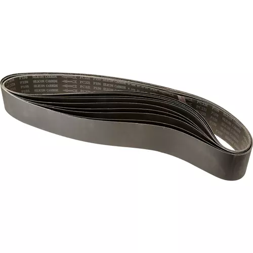 These metal polishing silicon carbide belts are typically used on non-ferrous products such as titanium, brass, and bronze. 4" x 79", 150 grit, waterproof.