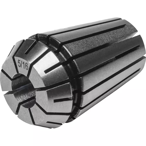 The 5/16" ER20 Spring Collet squeezes against the tool or workpiece to be held, forming a collar that locks it in place.
