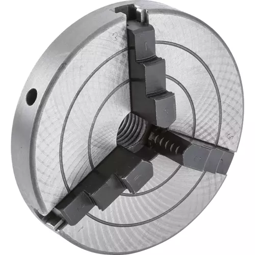 Synchronized jaws tighten at the same time and are self-centering. Includes tightening wrenches.