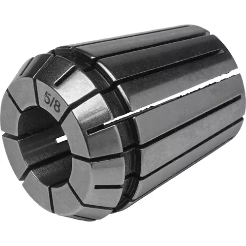 The 5/8" ER32 Spring Collet squeezes against the tool or workpiece to be held, forming a collar that locks it in place.
