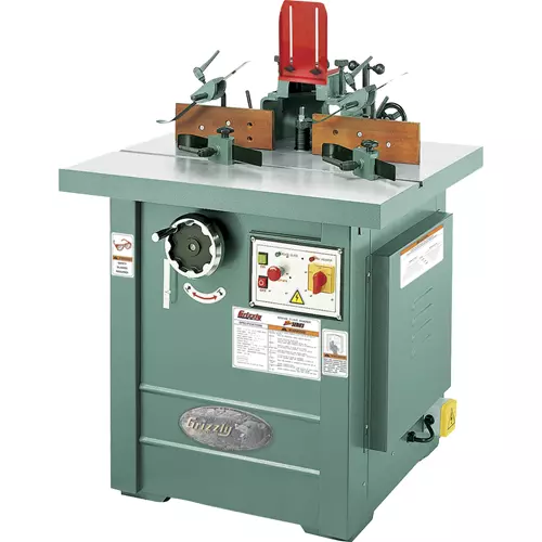 The G5912Z 5 HP Industrial Spindle Shaper handles cutters up to 5-7/8" diameter by 5-1/8" tall. The four speed V-belt drive system lets you slow down those big cutters from 10,000 RPM to 3600 RPM.