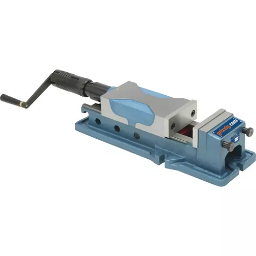 These mechanical/hydraulic Milling Vises have no clutch mechanism, so the workpiece clamping operation is silky smooth. No worries about the workpiece shifting either with a 2:1 down thrust mechanism and tons of clamping pressure. Just like the vises above, these Hydraulic Milling Vises are extremely well made with very tight tolerances. Purchase the cast iron swivel bases separately for unmatched work holding versatility.