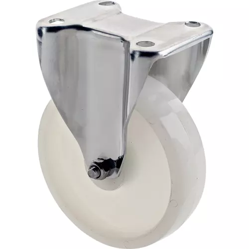 Non-marring Nylon Casters feature stainless steel construction for corrosion resistance and double ball bearing raceways for smooth swivel action.