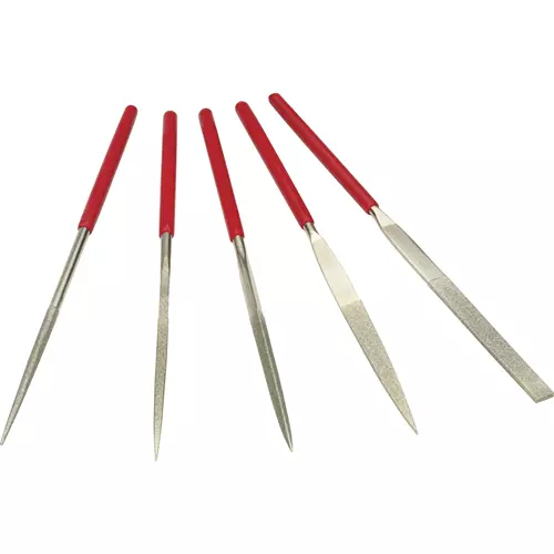 At just 5-1/2" long, these Diamond Files are ideal for most sharpening needs. However, they're particularly nice for restoring the cutting edges on carbide router bits and shaper cutters. The set includes flat, half round, triangular, square and round profiles.