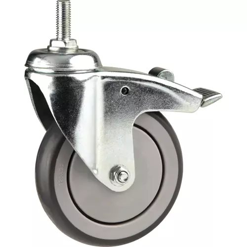 These polyurethane casters feature double ball race swivels and quiet ball bearing wheels.
