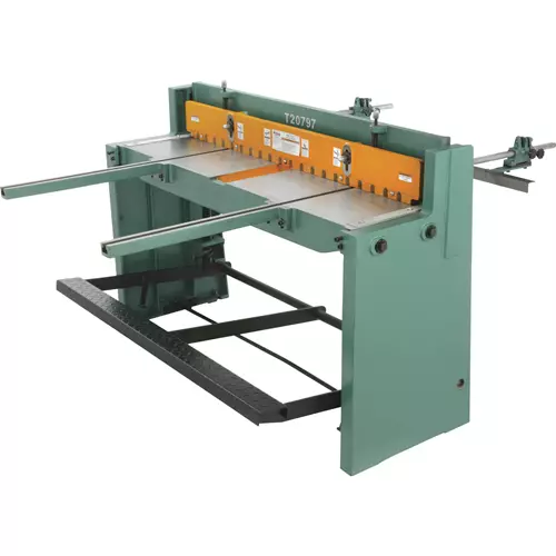 Cut your work down to size with this heavy-duty Shear. Cut up to 52" wide, 18 gauge mild steel with all the precision you’d expect from a machine this size. Features a heavy cast iron body with foot control, precision ground blade, spring activated hold down, safety guard & two micro-adjusting rear stop gauges. Also includes table gauges & front extension arms for those really large sheet metal jobs.