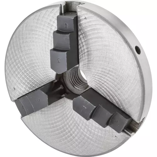 Hold round stock securely with this 3-Jaw Chuck. Jaws are self-centering and synchronized, and they can be reversed. Includes tightening wrenches.