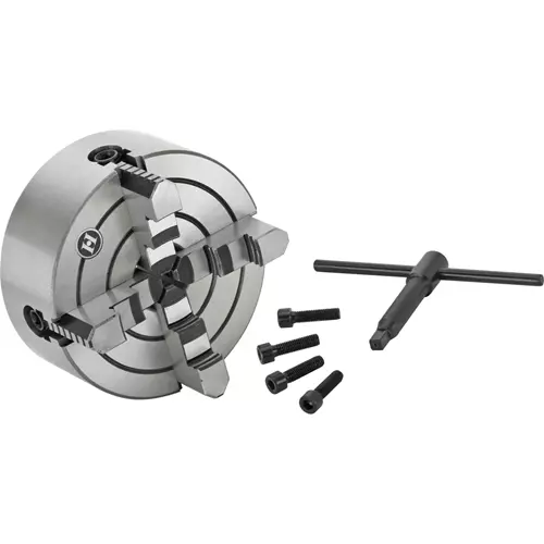 "Independent” means that each jaw moves independently. Such 4-jaw chucks are used for holding odd shaped pieces or where zero tolerance is required. These 4-jaw chucks have semi-steel bodies and hardened reversible jaws. Requires a back plate to mount to your spindle. Bore: 2 1/8"