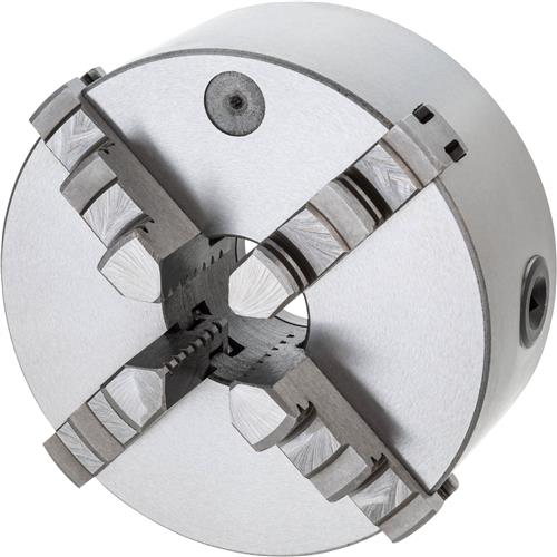 The T32463 6" 4-Jaw Plain Back Scroll Chuck has a semi-steel body and two sets of hardened jaws.