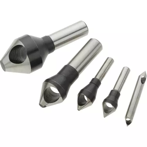 Countersink and deburr the easy way. Single cutting edge ensures fast stock removal and none of the chatter that's associated with multi-spur countersinks. Each set includes 1/16", 5/32", 3/16", 5/16", and 9/16" countersinks.