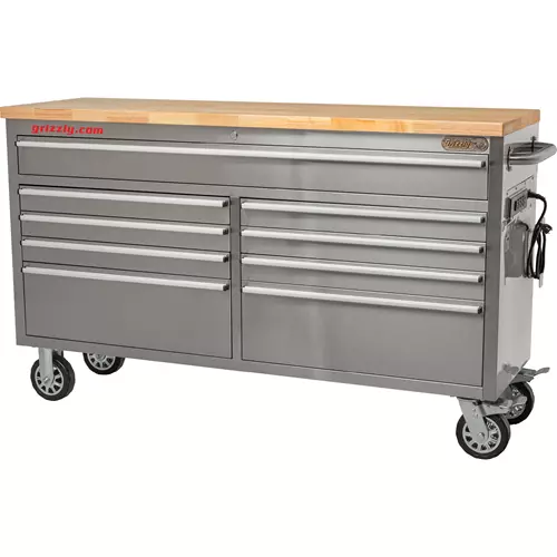 T33255 61" 9-Drawer Stainless Steel Industrial Tool Chest