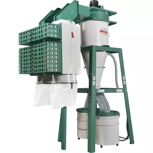The best of the best! This is the same unit as our G0637, but pre-equipped with an upgraded dual-filtration HEPA filter system! Our dual-filtration HEPA cyclones are geared toward those looking for the best filtration on the market. Features a primary filter with efficiency of 99.9% at 0.2-2 microns and a secondary HEPA filter with efficiency of 99.97% at 0.3 microns in size. The advantage of this dual filtration setup is the majority of all fine dust is captured by the first filter and only the finest dust makes it to the HEPA filter, resulting in up to a 900% increase in the life of the HEPA filter. This results in a superbly long-lasting HEPA filter (of up to 10 years) and the ultimate in clean air quality.