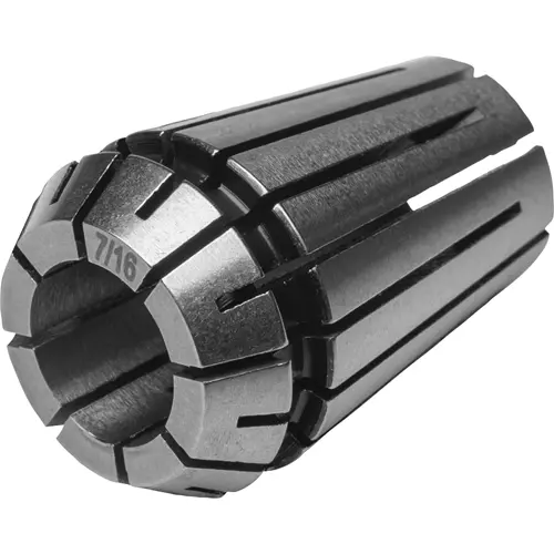 The 7/16" ER20 Spring Collet squeezes against the tool or workpiece to be held, forming a collar that locks it in place.