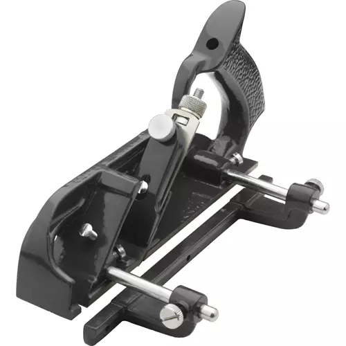 Includes an adjustable fence that can be used on either side of the plane, threaded depth adjusting screw for precise control of the plane iron, depth stop and edge spur for crisp edges.