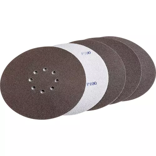 These 8-7/8" diameter 100-grit aluminum oxide sanding discs are for use with the T1239 Drywall Sander/Vacuum.