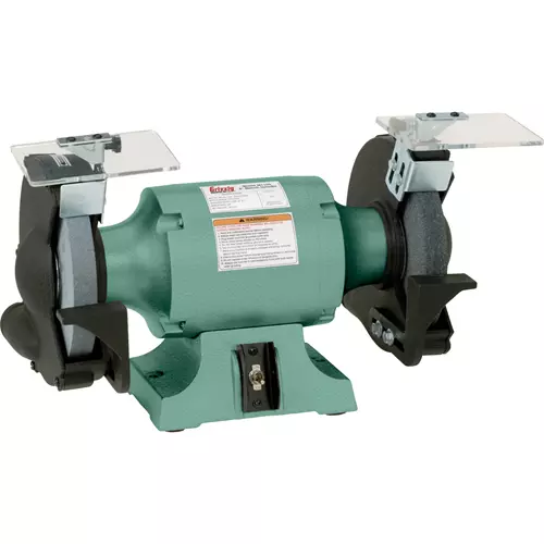 With plenty of power for your toughest bench grinding jobs, this 3/4 HP Bench Grinder runs on 110 volt power and turns at 3,450 RPM. Dual dust ports clear metal grindings when connected to a dust collector approved for metal grinding. This Bench Grinder takes 8" x 1" wide grinding wheels with 5/8" bores. Approximate shipping weight is 56 lbs.