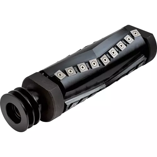 The T32018 8" V-helical Cutterhead comes equipped with 32 indexable, carbide inserts that can each be rotated three times for a new factory-sharp edge.