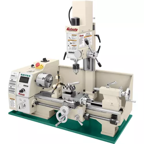 The G0769 adds a variable-speed milling head to the lathe, giving you two versatile metal working machines in one.