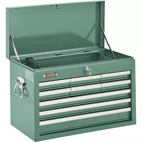 The lockable H0839 9-Drawer Top Tool Chest will store your organized tools and other items.