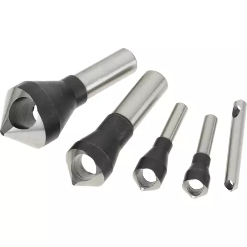 Countersink and deburr the easy way. Single cutting edge ensures fast stock removal and no chatter that's associated with multi-spur countersinks. Each set includes 1/16", 5/32", 3/16", 5/16", and 9/16" countersinks.