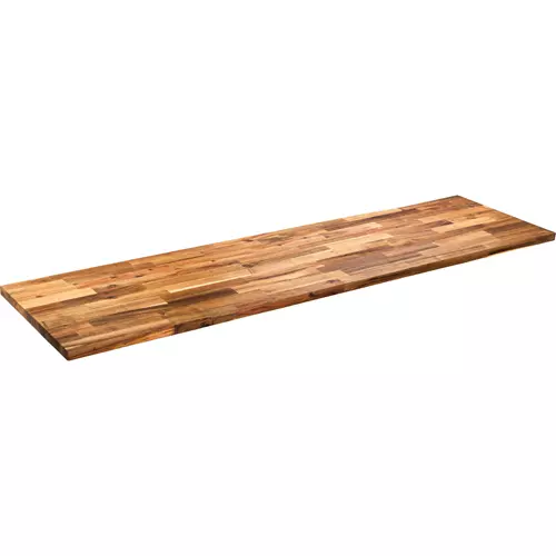 Made from naturally dense and firm AA-grade acacia wood and joined with durable finger joint construction, these rock-solid tops will stand the test of time on any shop bench or kitchen island. The butcher block is naturally resistant to scratches, dings, and warping, so it will stay looking new longer than other wood varieties.Select the perfect size for your project – tops start with a 36" length by 24" width option that is perfect for a small workbench and range up to 120" length by 36" width that is an ideal choice for a customized kitchen countertop. Every butcher block top is 1-3/4" thick for strength and durability.