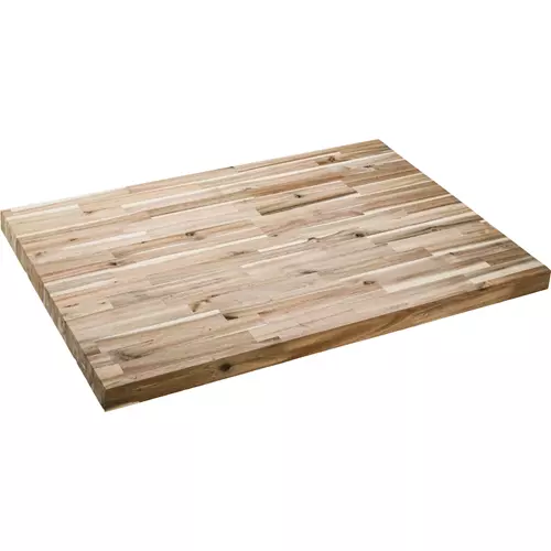 Made from naturally dense and firm AA-grade acacia wood and joined with durable finger joint construction, these rock-solid tops will stand the test of time on any shop bench or kitchen island. The butcher block is naturally resistant to scratches, dings, and warping, so it will stay looking new longer than other wood varieties.Select the perfect size for your project – tops start with a 36" length by 24" width option that is perfect for a small workbench and range up to 120" length by 36" width that is an ideal choice for a customized kitchen countertop. Every butcher block top is 1-3/4" thick for strength and durability.