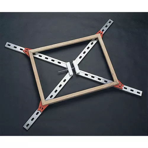 This popular clamp can handle frames from 5" x 7" to 26" x 30". If you have bigger frames, it can be extended with a common bar clamp. Features durable aluminum construction and self-squaring clamp pads, and comes complete with fully illustrated instructions.