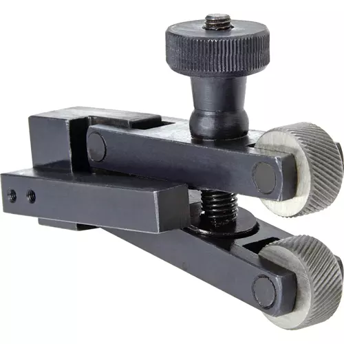 This Knurling Tool Holder is adjustable for perfect diamond pattern knurls on any sized work piece. Hardened and precision ground wheels produce medium knurls. Fits 3/8" x 3/8" tool holders. Black oxide finish.