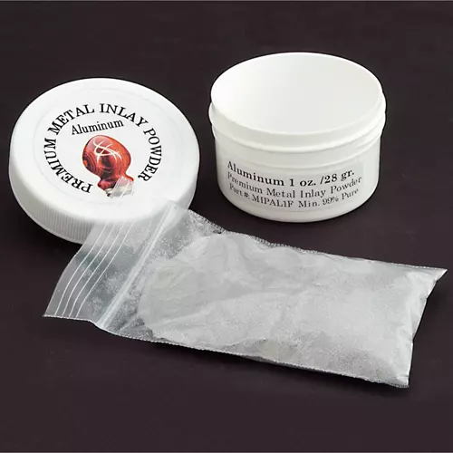 Premium Metal Inlay Powders are available in copper, brass, aluminum, and bronze. These powders will give you a shiny metal inlay in your turned or flat wood projects. Perfect for use in carved or laser engraved motifs, great for disguising cracks and blemished wood. See the T25309 Metal Inlay Techniques DVD to learn how best to use these powders and give shine to your projects! One ounce of the aluminum powder.