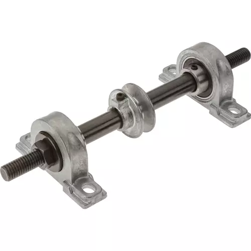 Attach one of these madrels to your electric motor with V-belt for a low cost grinding/polishing workstation. Accepts wheels up to 1" wide. 5/8" mandrel in pre-lubricated ball bearings. Features 5/8 -11 RH & LH threads. Made in the USA.Measures: 5-3/4" between pillow blocks, 11-1/2" overall length