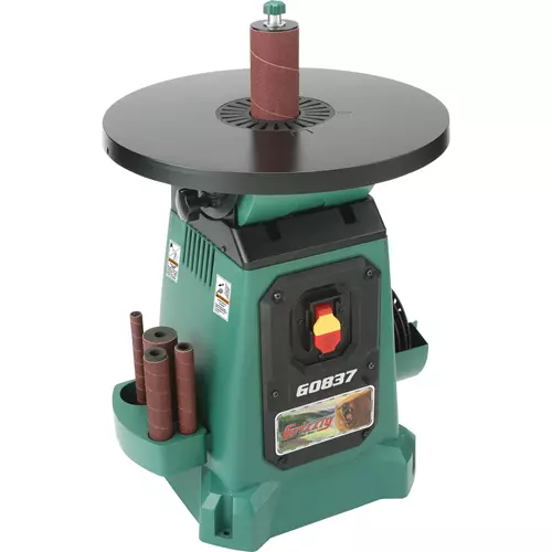 Are you looking for an oscillating spindle sander with a tilting table that fits your workbench? Look no further! This Benchtop Oscillating Spindle Sander has a 15" diameter table with 0-45° tilt adjustment. This sander comes with round table inserts for sanding 90° to the spindle and slotted table inserts for angled sanding. The footprint is only 12" x 12" and features a 1/2" automatic spindle oscillation, a 2" dust port, and five sanding sleeve options. This sander brings all the features you've come to expect from a Grizzly machine!