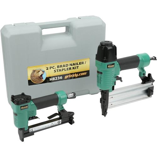 Kit includes an 18 Gauge Brad Nail Gun, 21 Gauge 1/2" Crown Stapler, 1/4" NPT quick connect fittings, Allen® wrenches, goggles, lubricating oil and carrying case