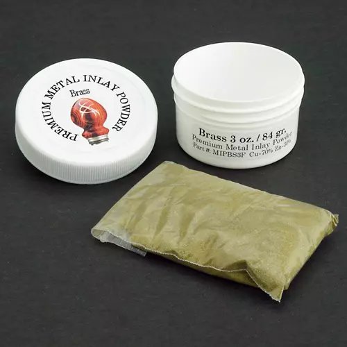 Premium Metal Inlay Powders are available in copper, brass, aluminum, and bronze. These powders will give you a shiny metal inlay in your turned or flat wood projects. Perfect for use in carved or laser engraved motifs, great for disguising cracks and blemished wood. See the T25309 Metal Inlay Techniques DVD to learn how best to use these powders and give shine to your projects! Three ounce size of the brass powder.