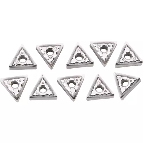 These Carbide Inserts are for stainless steel and for the T10378 Heavy-Duty Boring Bar. They are 2 sided giving you 6 cutting edges per insert. 10 pack.