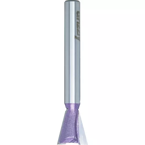 Sometimes you want the best money can buy; sometimes your project requires you to use the best router bits made. If so, this router bit fits the bill! Starting with a better quality steel for the bodies (SAE4140), we heat treat it to the appropriate hardness and apply K10 micro grain carbide. We then precision grind the blades to 800 grit (using the wet grinding process) so that it is razor sharp and then finish it with a baked-on metallic paint. This router bit is made for us and to our exacting specifications in an ISO 9001 rated factory. The purple color used on our Super-Duty Router Bits is a registered trademark and is owned by Grizzly Industrial. These bits are specially made for use in dovetail fixtures and jigs. They have an extended shank length and a high rake angle for smooth, fast routing in all types of wood and wood composite material. They feature a shear angle and an anti-friction coating.