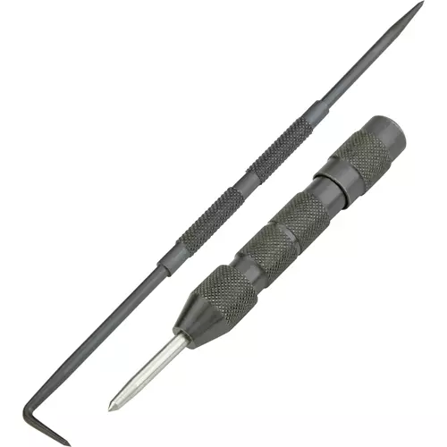 This is the perfect set for all metal layout jobs. The double ended scribe is hardened for marking lines on all types of metal and the automatic center punch with hardened tip locates centers for drilling. An indispensable set for every machinist.