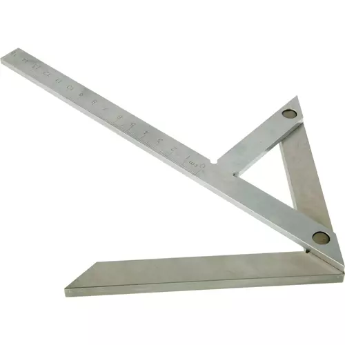 This precision Centering Square measures 45 degrees for locating turning centers on square or round stock as well as measures 90 degrees for other squaring functions. Graduations are in millimeters.