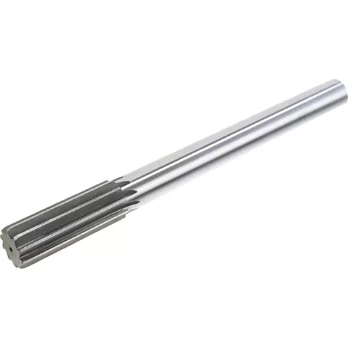 Finishing holes within tight tolerances, this American Standard high-speed steel reamer features straight flutes with 45 degree chamfer for gradual starting load.