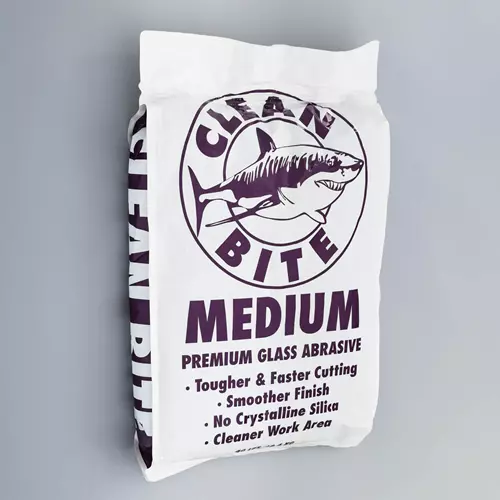 This specialized abrasive is made from 100% post-consumer recycled crushed glass and provides a dust-free finish.