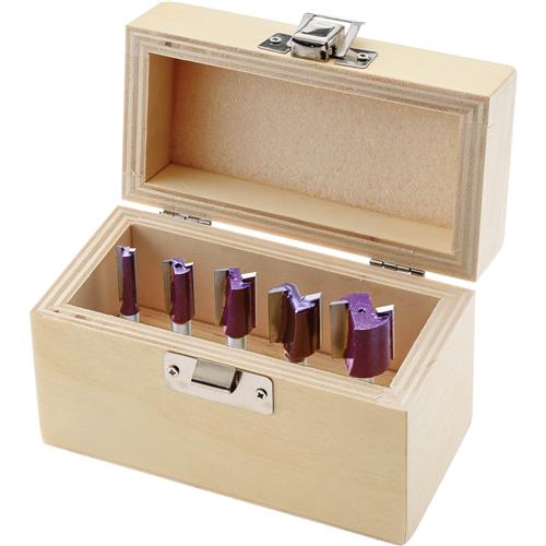Everyone has been after us to put our famous Grizzly straight bits into a set-and now we have! This set includes: 1/4", 3/8", 1/2", 5/8" and 3/4" and a wooden box. 1/4" shank.