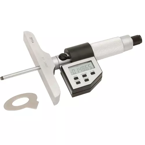 Get ultimate accuracy while measuring depth in holes, steps and grooves. This depth micrometer features a thick, wide base for stability, easy-to-read display and unbeatable accuracy over any depth gauge! Resolution is 0.00005" / 0.001 mm.