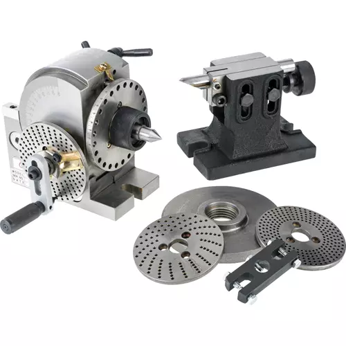 These high quality dividing heads are made with demanding care for precision gear-cutting, sharpening milling cutters, reamers, etc. Dividing heads come complete with 3 dividing plates, 1 tailstock, 1 chuck back plate, 1 center-dog and 1 center. Thread on nose 1-1/2" x 8 TPI. Ratio: 40:1