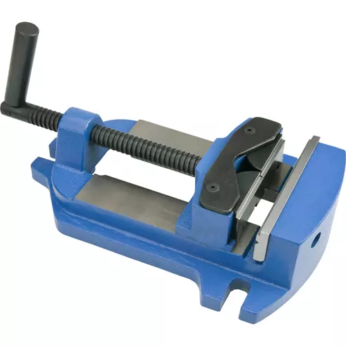 The T26475 Drill Press Vise with V-Block Jaw is equipped with a 1" deep V-groove, centered 1" above the vise bed. This design allows for the secure horizontal clamping of round stock.