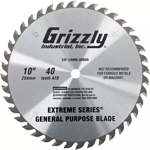 This general purpose blade sports an ATB grind on micro-grain carbide tips ensure consistent performance over a long cutting life. Arbor bore size is 5/8" and kerf is 0.120". This 40-tooth blade is for ripping and cross cutting.